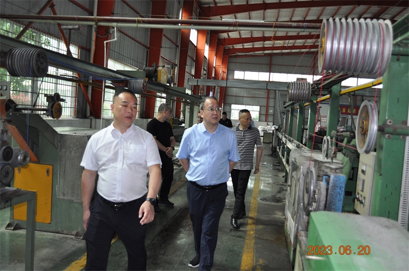 陳夕林秘書長一行參觀了企業產品展廳、生產線及企業研發檢測中心,并詳細了解企業產品創新亮點及企業當前生產經營情況。當了解到公司已成立省級企業技術中心、電線電纜新材料省級工程研究中心,并獲批國家級專精特新小巨人企業時,領導對我公司能始終堅持創新引領,對品質精益求精的發展理念給予了充分肯定和贊揚,并鼓勵企業抓住機遇,迎難而上,充分利用自身優勢,立足本省,輻射區全國,做大做強湘鶴品牌,為我省實現“三高四新”做出新的、更大貢獻!